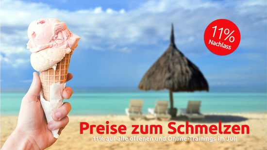 Der Preis gilt für alle Buchungen, die Sie im Juli vornehmen - unabhängig davon, in welchem Monat im Jahr 2020 die gebuchte Schulung stattfindet.